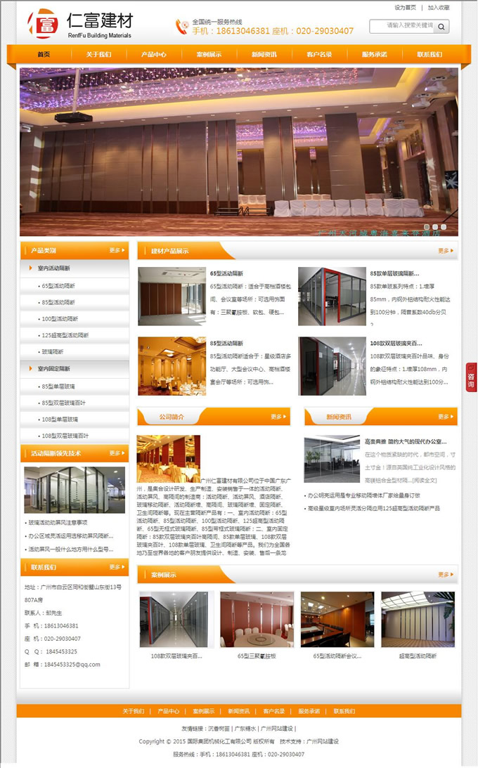 “仁富”公司自成立以來,一直專注于活動(dòng)隔斷建材技術(shù),在生產(chǎn)工藝上,通過使用優(yōu)質(zhì)的原材料、先進(jìn)的專業(yè)生產(chǎn)設(shè)備,高效的生產(chǎn)團(tuán)隊(duì),嚴(yán)格的檢驗(yàn)流程,確保每一件交付給客戶的產(chǎn)品品質(zhì)都保持一流的水平。為此還設(shè)有專門的設(shè)計(jì)部門、生產(chǎn)部門、安裝隊(duì)伍。其中安裝技術(shù)員大部分親自參與過大量的國(guó)內(nèi)外大型重點(diǎn)工程項(xiàng)目的制作加工和現(xiàn)場(chǎng)安裝工作;另外,“仁富”產(chǎn)品所用到的配件擁有自己的核心制造車間,這兩方面極大程度上保證了“仁富”產(chǎn)品生產(chǎn)效率及產(chǎn)品質(zhì)量!叭矢弧币栽O(shè)計(jì)新穎、工藝精湛、品質(zhì)優(yōu)良、服務(wù)貼心贏得廣大客戶的認(rèn)同及信賴,并在隔斷屏風(fēng)行業(yè)率先通過1SO9001質(zhì)量認(rèn)證,走在隔斷屏風(fēng)技術(shù)的前端。